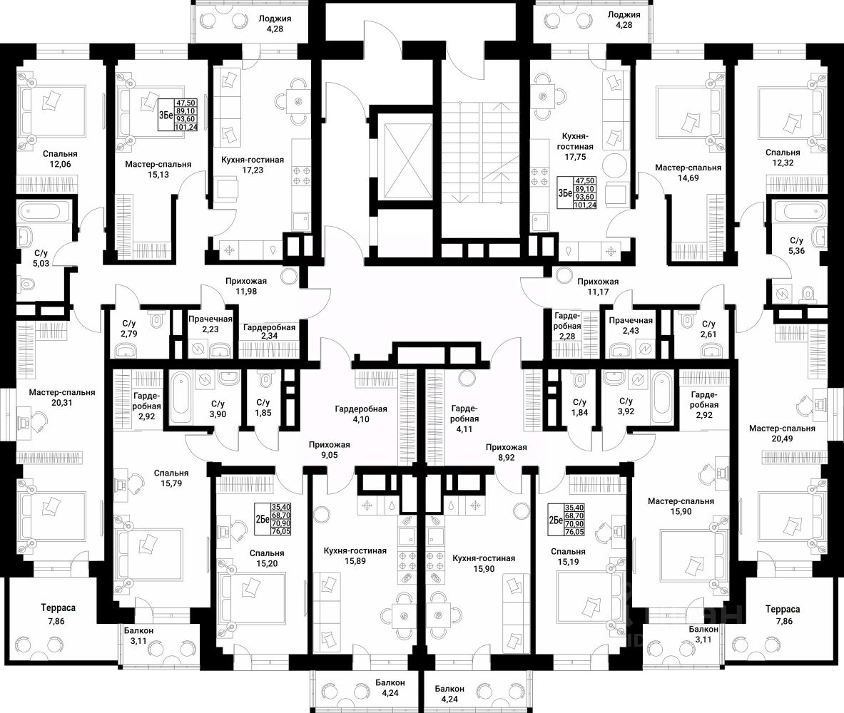 • 4-6 квартир на этаже
