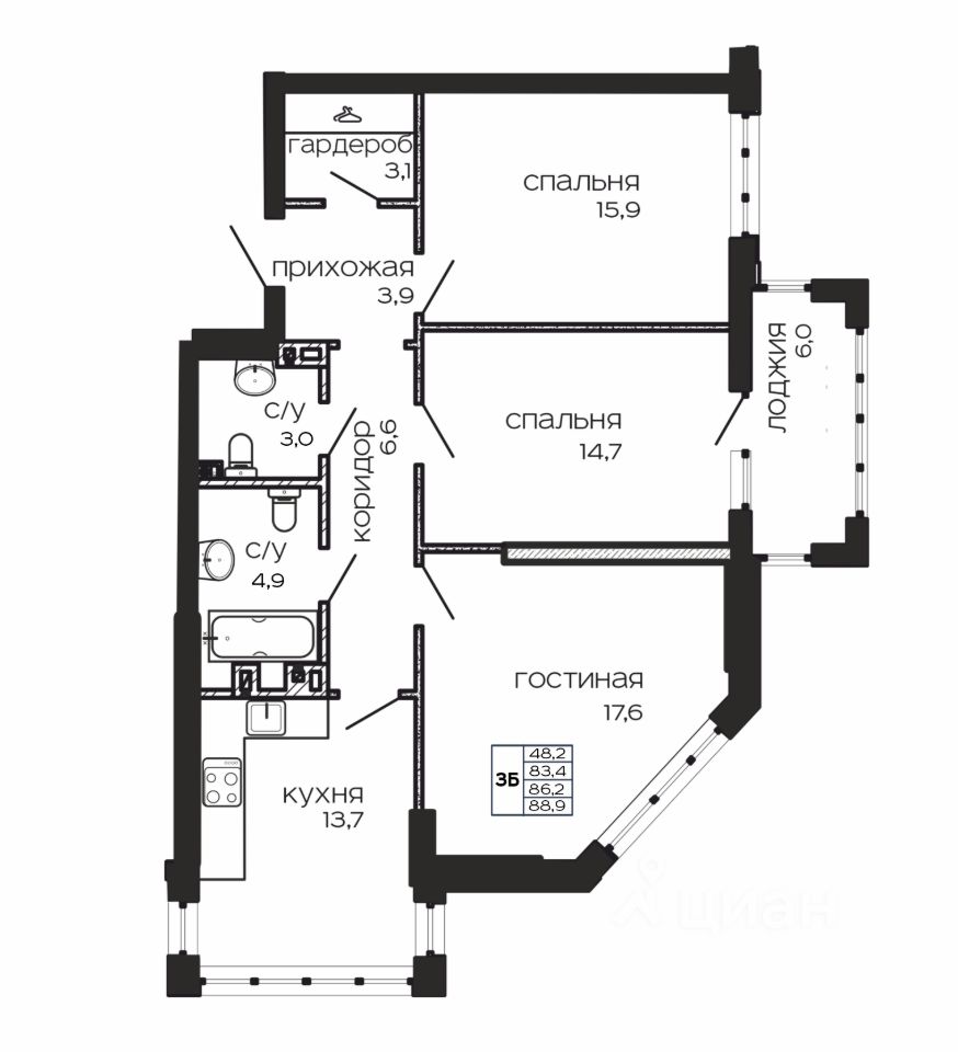 Продается просторная 3-комнатная квартира 88,4 кв.м. в новостройке у парка Революции. Дом сдан.