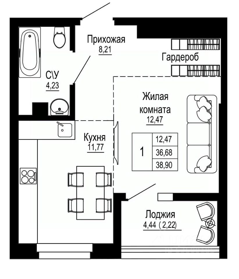 38,94 м²