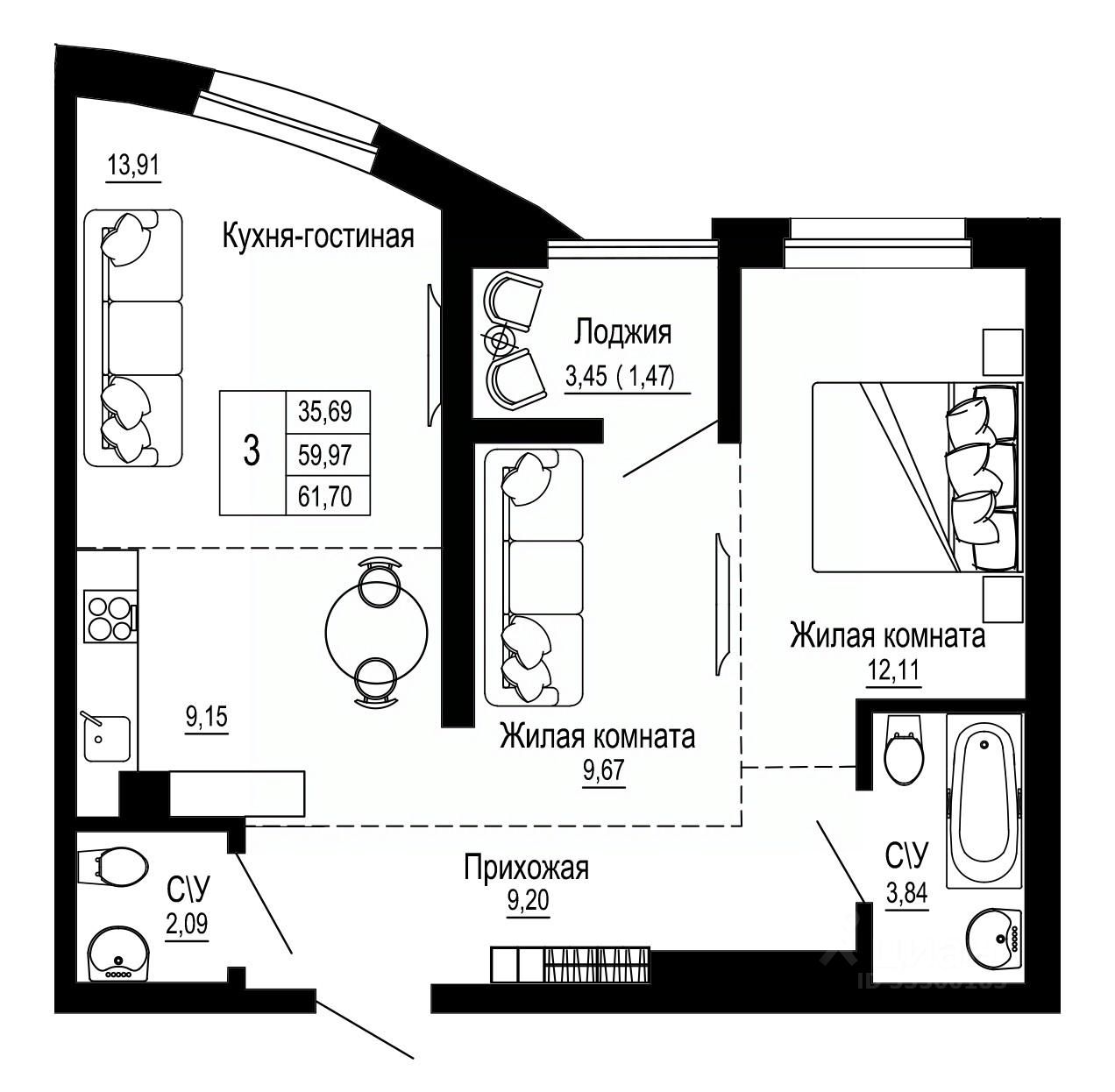 61,92 м²