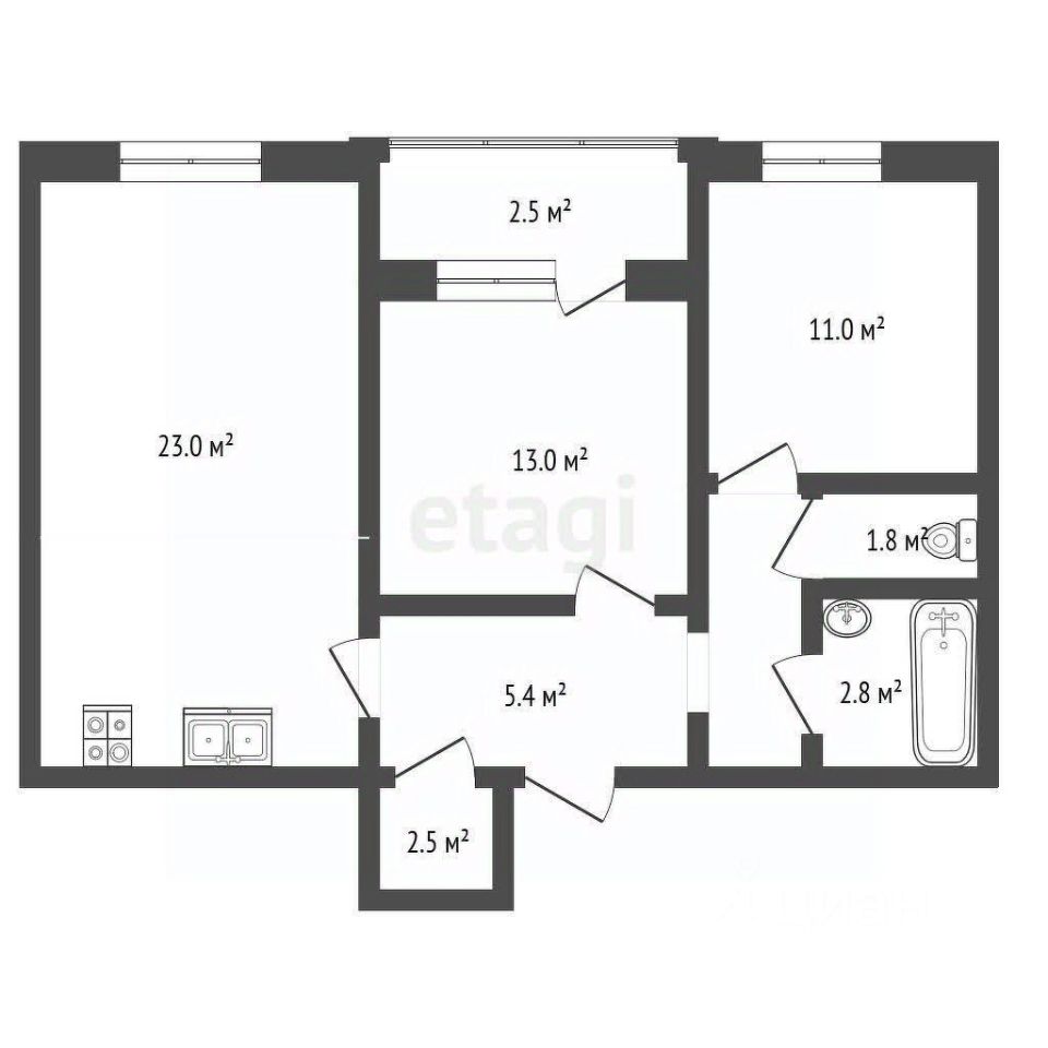 Основное преимущество объекта — продуманная планировка с большой кухней - гостиной 23 м².