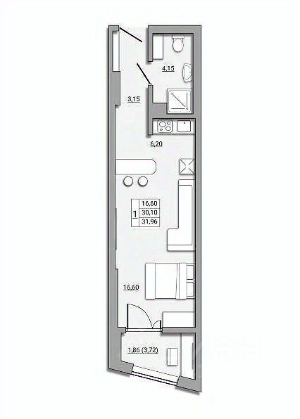 Большая, просторная студия, есть двуспальная кровать и диван (раскладывается). Санузел в керамограните, душевая кабина из плитки и бойлер. Лоджия утеплена, проведена электрика (можно сделать рабочее место). Квартира полностью готова, даже посуда уже есть, докупать/доделывать ничего не нужно. Зайти и разложить вещи.