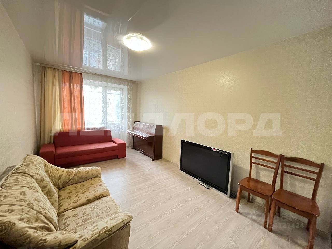 На полу ламинат, окна металлопластиковые стеклопакеты.