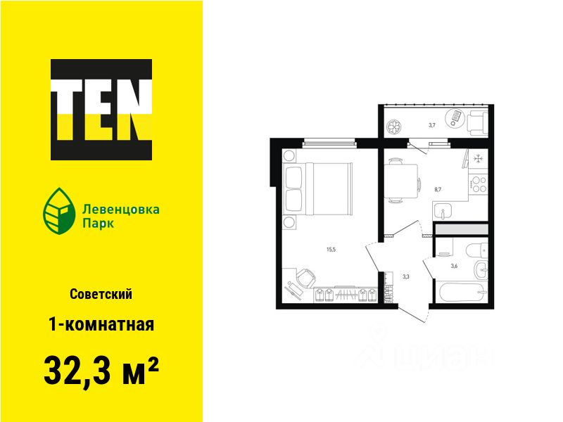 Общая площадь32,3 м²