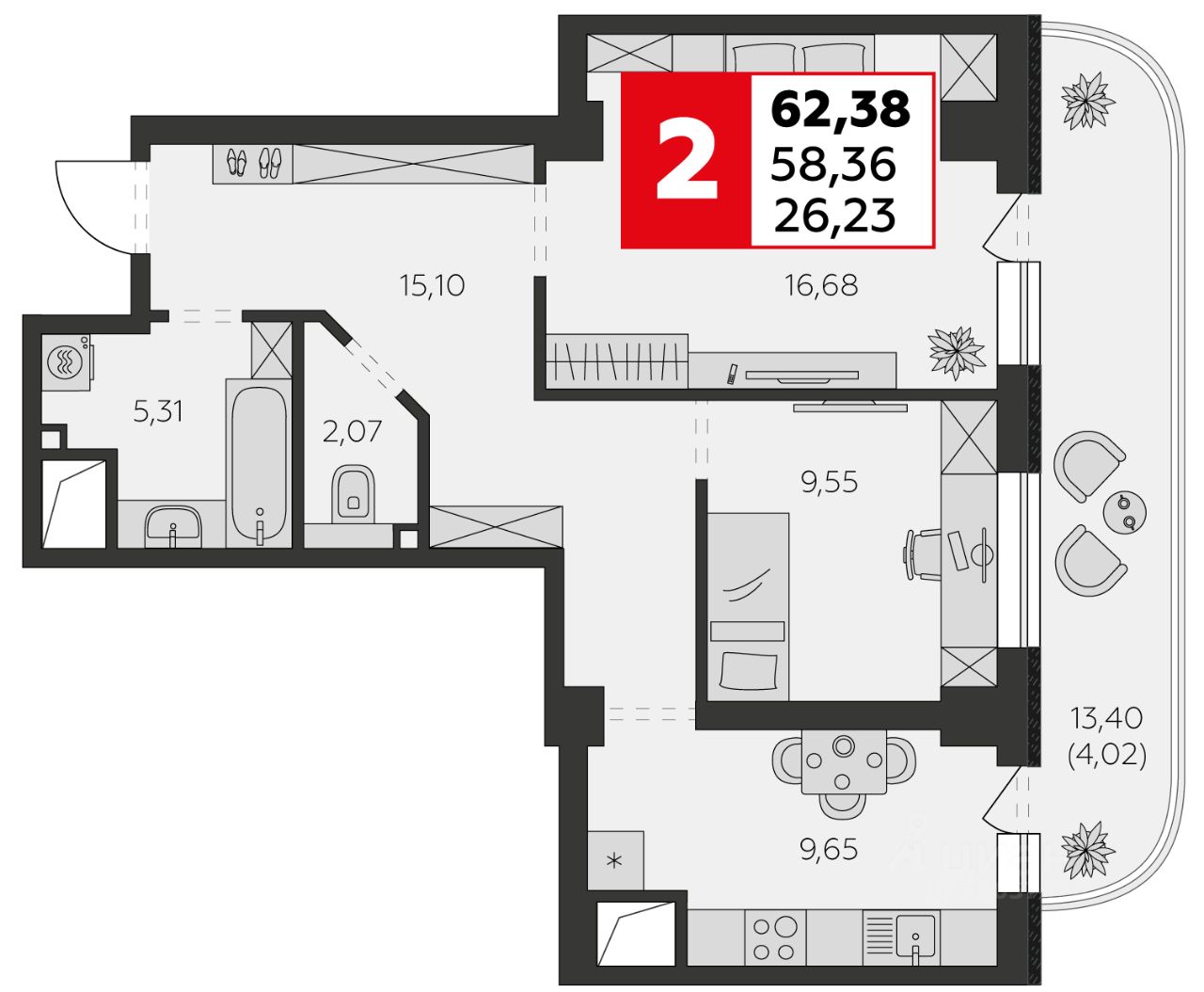Продаётся 2-комнатная квартира в строящемся доме (Воровского, 53), срок сдачи: IV-кв. 2025, общей площадью 62.38 кв.м., на 1 этаже. Жилой комплекс В53 расположен в активно развивающемся районе. В новых домах представлены удобные и продуманные планировки - от уютных компактных студий до просторных и светлых трехкомнатных квартир.