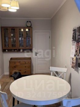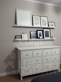 Комод и навесные стеклянные шкафчики для посуды. Окна украшены льняными шторами. Утепленная лоджия с батареей, теплым полом, креслом-качалкой, полками, морозильной камерой Атлант, шкафом для утвари, микроволновой печью Samsung, стиральной машиной Indesit, ящиком для белья, стеллажом.