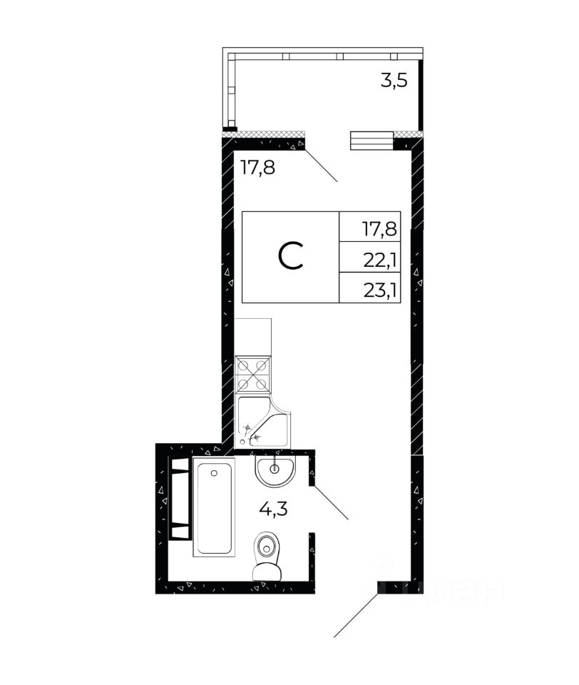 Общая площадь23,1 м²
