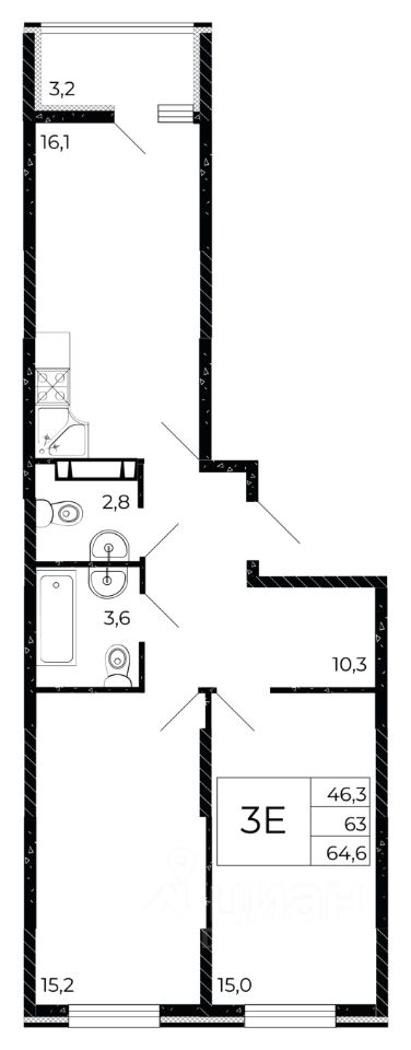 Общая площадь64,6 м²