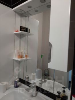 встроенная тумба со шкафчиками, с большим зеркалом, пенал.