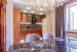 Интерьер реализован в классике, недавно обновлен. Стены окрашены, покрытие пола - паркет.