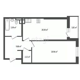 Продуманная эргономика: Застройщик позаботился о порядке. В квартире — множество умных систем хранения, большая прихожая и отдельная гардеробная комната. Просторная ванная комната площадью почти 6 м².