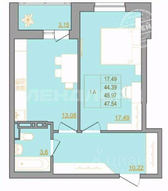 - удобная и функциональная планировка общей площадью 47,90м