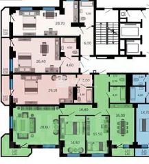 Удачная планировка, которая позволяет рационально использовать пространство. Всё комнаты изолированные без перепланировки: спальня (13,5м), детская (14,6 м) и зал (29,5 м). Санузел раздельный.