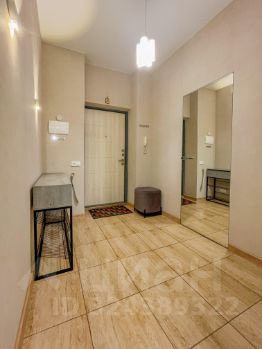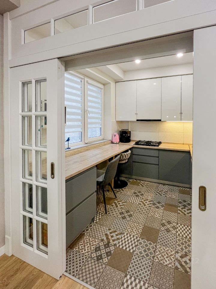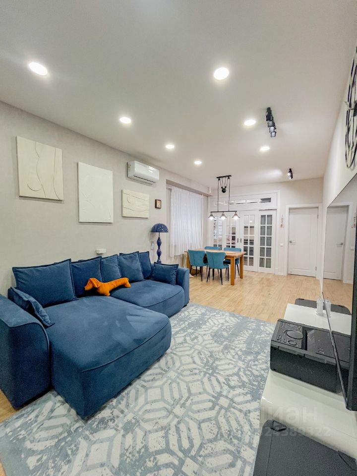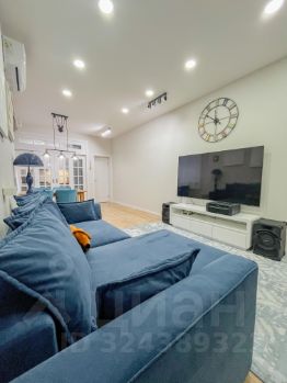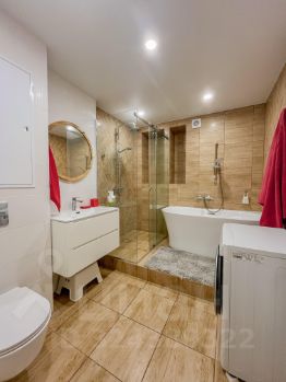 Планировка: холл с гардеробной комнатой, две изолированные комнаты, гостиная, кухонная зона, санузел с ванной и душевой и остеклённой лоджией.