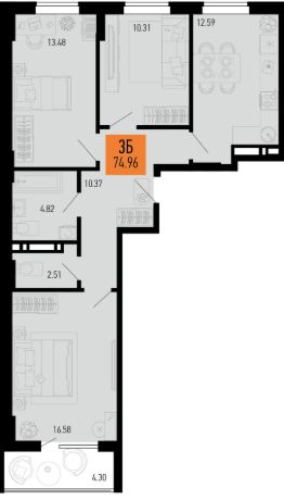 Продаётся 3-комнатная квартира в строящемся доме (Литер 11.2), срок сдачи: II-кв. 2028, общей площадью 72.81 кв.м., на 2 этаже.