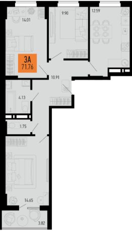 Продаётся 3-комнатная квартира в строящемся доме (Литер 11.3), срок сдачи: II-кв. 2028, общей площадью 69.85 кв.м., на 2 этаже.