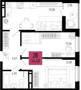 Продаётся 2-комнатная квартира в строящемся доме (Литер 1.1), срок сдачи: IV-кв. 2026, общей площадью 52.93 кв.м., на 2 этаже.