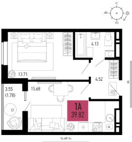 Продаётся 1-комнатная квартира в строящемся доме (Литер 11.4), срок сдачи: II-кв. 2028, общей площадью 39.82 кв.м., на 11 этаже.
