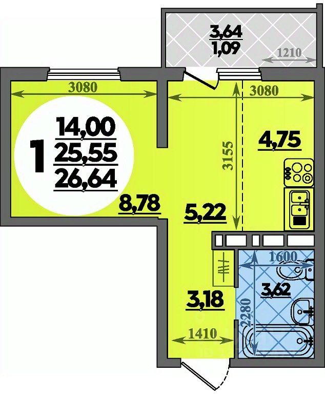 Продаётся 1-комнатная квартира в строящемся доме (Дом 14), срок сдачи: IV-кв. 2026, общей площадью 26.64 кв.м., на 14 этаже. Готовы переехать? Ключи — сразу после сделки! Ремонт в подарок! ИПОТЕКА ДЛЯ ВСЕХ 13,9%