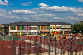 Современная большая школа (и еще одна со спортивным уклоном — в стадии строительства).