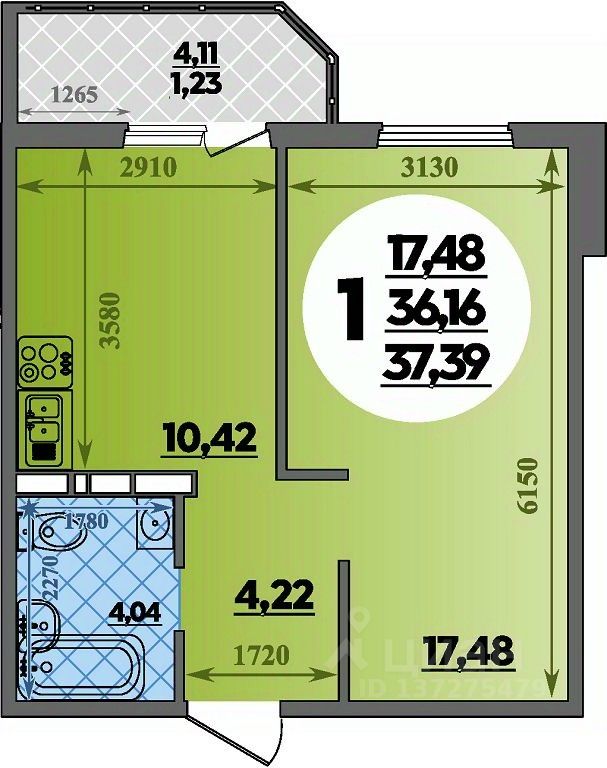Продаётся 1-комнатная квартира в сданном доме (Костенко, 6 (Литер 7)), срок сдачи: III-кв. 2025, общей площадью 37.39 кв.м., на 2 этаже. Готовы переехать? Ключи — сразу после сделки! Ремонт в подарок! ИПОТЕКА ДЛЯ ВСЕХ 13,9%