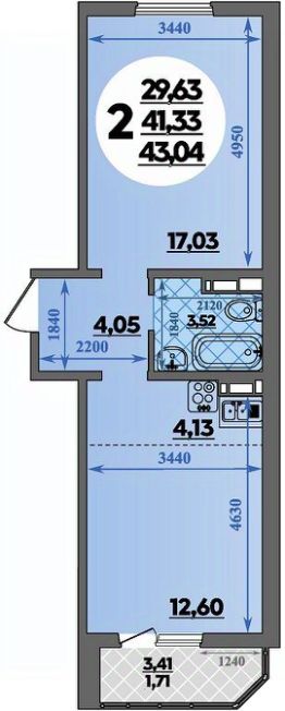 Общая площадь43,04 м²