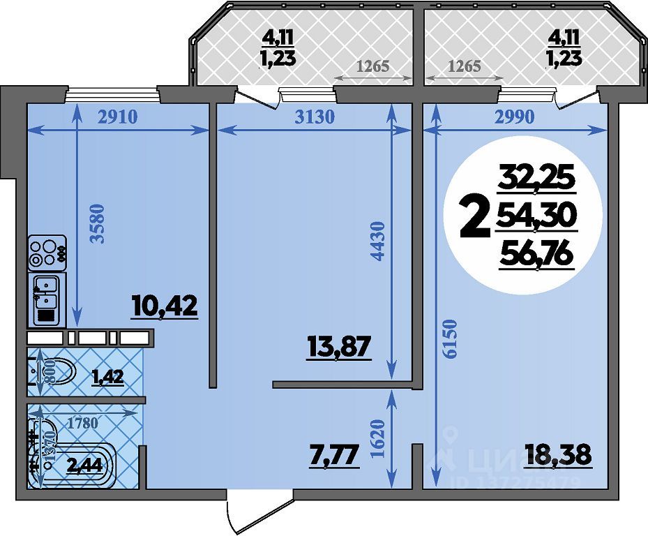 Продаётся 2-комнатная квартира в строящемся доме (Юрия Дубинина, 1 (Литер 23)), срок сдачи: IV-кв. 2025, общей площадью 56.76 кв.м., на 16 этаже. Готовы переехать? Ключи — сразу после сделки! Ремонт в подарок! ИПОТЕКА ДЛЯ ВСЕХ 13,9%