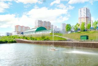 3 живописных озера с благоустроенной набережной, лавочками, фонтанами и световыми инсталляциями.