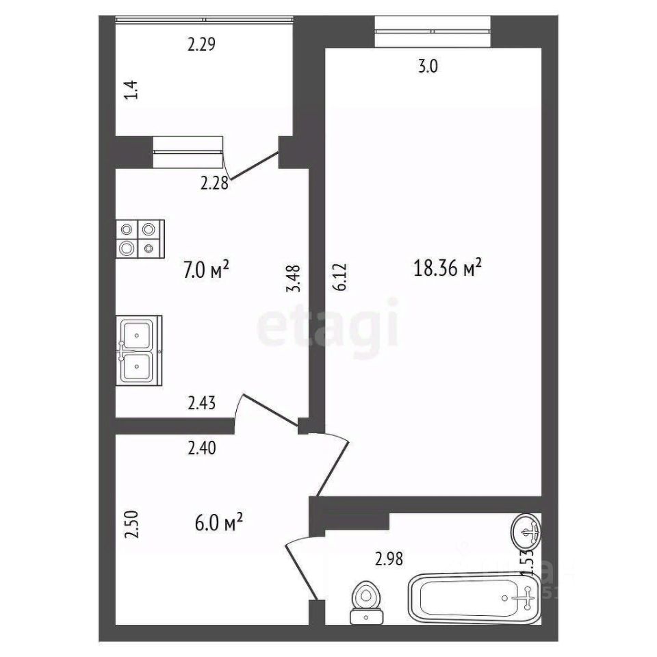Дом новый, сдан в 2024 году. Квартира-стройвариант с лоджией, площадь 34 м². Имеется подземный паркинг.