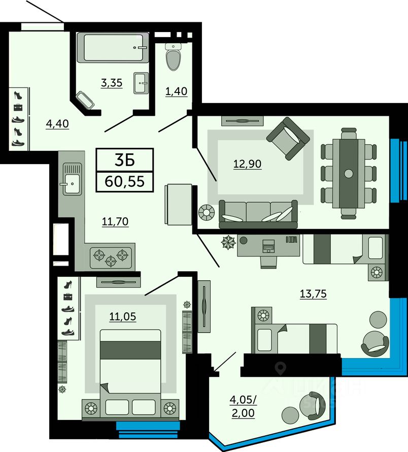 Продаётся 3-комнатная квартира в строящемся доме (Дом 2), срок сдачи: III-кв. 2026, общей площадью 60.55 кв.м., на 19 этаже. Новый жилой комплекс "Донской Арбат 2" от группы компаний "МСК" расположен по адресу: г. Ростов-на-Дону, по Кировскому проспекту.
