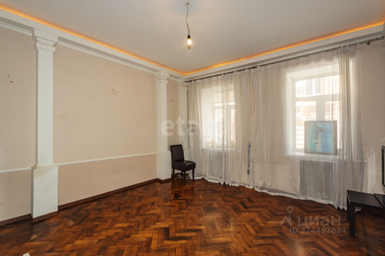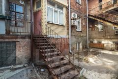 Находится на высоком 1м этаже, окна выходят во двор и на улицу, лоджия остеклена.