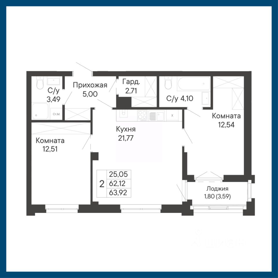Общая площадь63,92 м²