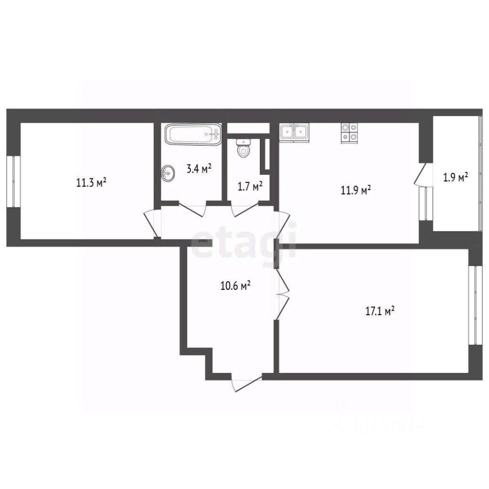 Общая площадь: 57,9 м²