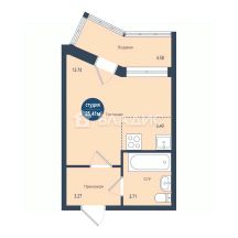 Общая площадь - 27,3 м²;