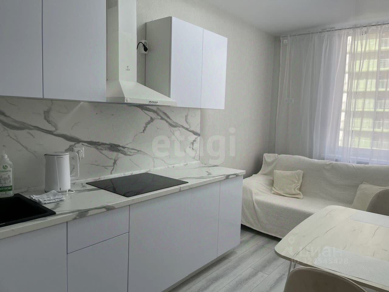В оформлении использована современная мебель, включая кухонный гарнитур, спальные места и модули для хранения. Жилой комплекс отличается развитой инфраструктурой и отличной транспортной доступностью.