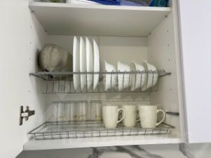 Дополнительную практичность жилью придает наличие изолированной гардеробной комнаты для организации систем хранения. В квартире установлен современный кондиционер, а из техники присутствует вся необходимая бытовая техника: холодильник, стиральная и посудомоечная машины, а также водонагреватель.