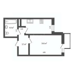 К продаже предлагается светлая однокомнатная квартира с общей площадью 34.3 м². Расположена на 11 этаже 25-этажного дома. Ключевым преимуществом объекта является его планировка с увеличенной кухней площадью 12 м²