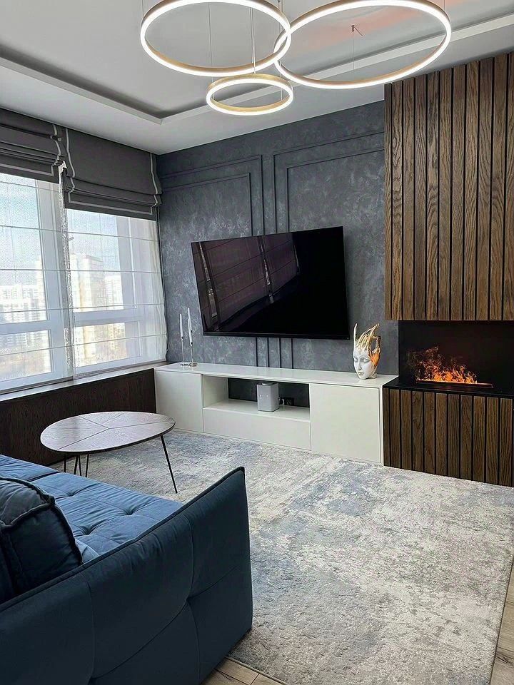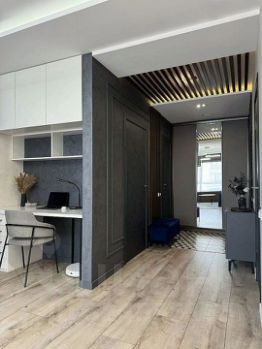 Ремонт выполнен по дизайн-проекту из дорогих и качественных материалов (двухслойная шумоизоляция, потолки из гипсокартона, декоративная окраска стен, электрокамин, подоконники из натурального древесного шпона и др.) Ремонт в отличном состоянии, не изношен.