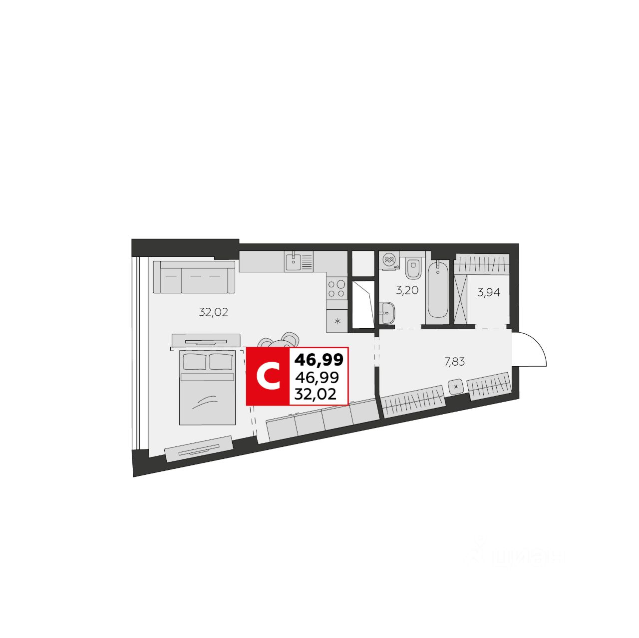 Продаётся 1-комнатная квартира в строящемся доме (Высотка), срок сдачи: II-кв. 2026, общей площадью 46.99 кв.м., на 17 этаже. Новый жилой комплекс от Специализированного застройщика "Спутник" расположен п адресу: г. Ростов-на-Дону, по ул. Штахановского.