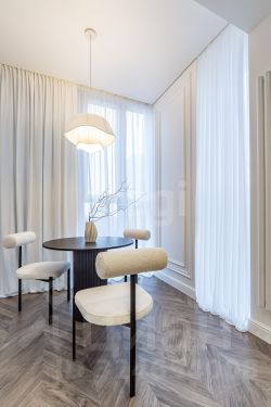 Продается просторная квартира площадью 80 м² в современном жилом комплексе бизнес-класса "Сквер", расположенном в центральном районе города. Объект предлагает выгодную сделку в связи со срочной продажей. Квартира представляет собой евро-трехкомнатную планировку, полностью подготовленную к комфортному проживанию благодаря выполненному по индивидуальному дизайн-проекту ремонту. В отделке использованы исключительно качественные материалы: испанский паркет "французская елка" от Faus, итальянский керамогранит 41zero42, стены выровнены под лампу и окрашены краской Flugger, установлены скрытые двери Academy, а также декоративные элементы Orac decor. Освещение реализовано на оборудовании Maytoni и Arlight с продуманными сценариями. В стоимость входит авторская мебель, изготовленная на заказ в местном ателье, включая обеденную группу Cazarina interiors и корпусную мебель.