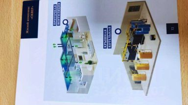 При строительстве дома используются высокотехнологичные материалы и оборудование для коммуникации, дизайнерский интерьер общих холлов. Высота потолков более 3 метров.