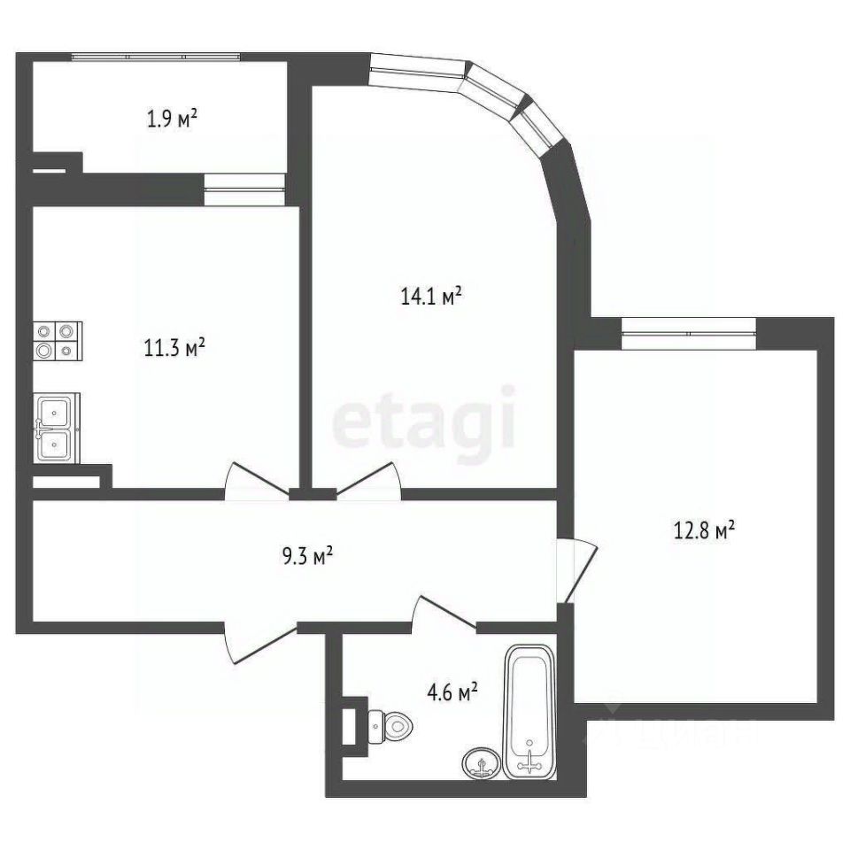 Продается 2-к квартира 53,7 м² в Кировском районе, в жилом комплексе комфорт-класса "Левобережье"
