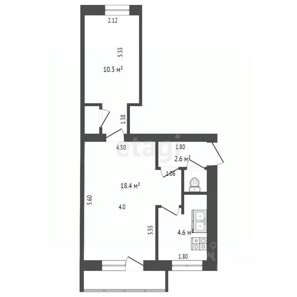 Просторная гостиная и светлая спальня.Высокие потолки и большие окна создают ощущение простора.Удобная планировка, функциональность и комфорт.Квартира готова для проживания или сдачи в аренду.