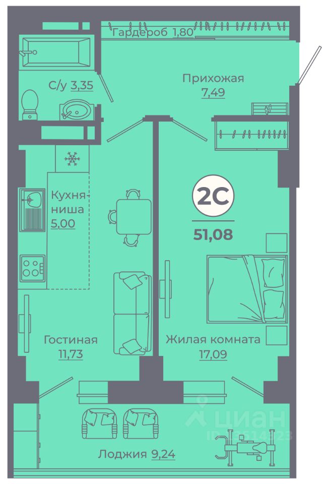 Общая площадь51,03 м²