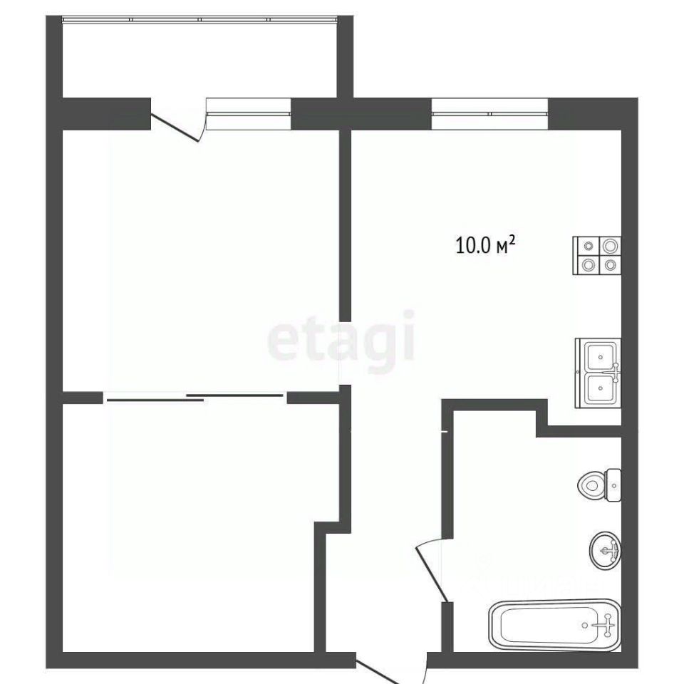 Общая площадь: 45,9 м²Кухня: 10 м² (удобная планировка).