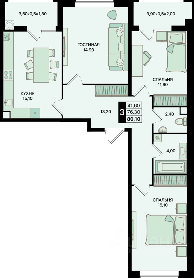 Общая площадь80,1 м²