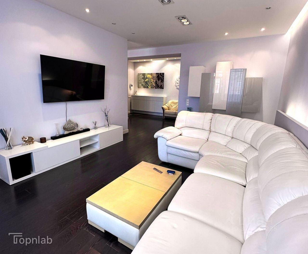 Метраж и планировка: 110 кв.м. — просторная кухня-гостиная, 2 изолированные спальни, 2 санузла.