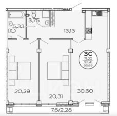 - мастер-спальня 20кв.м со своим с/у 5,3 кв.м