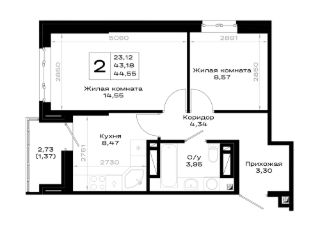 44,55 м²