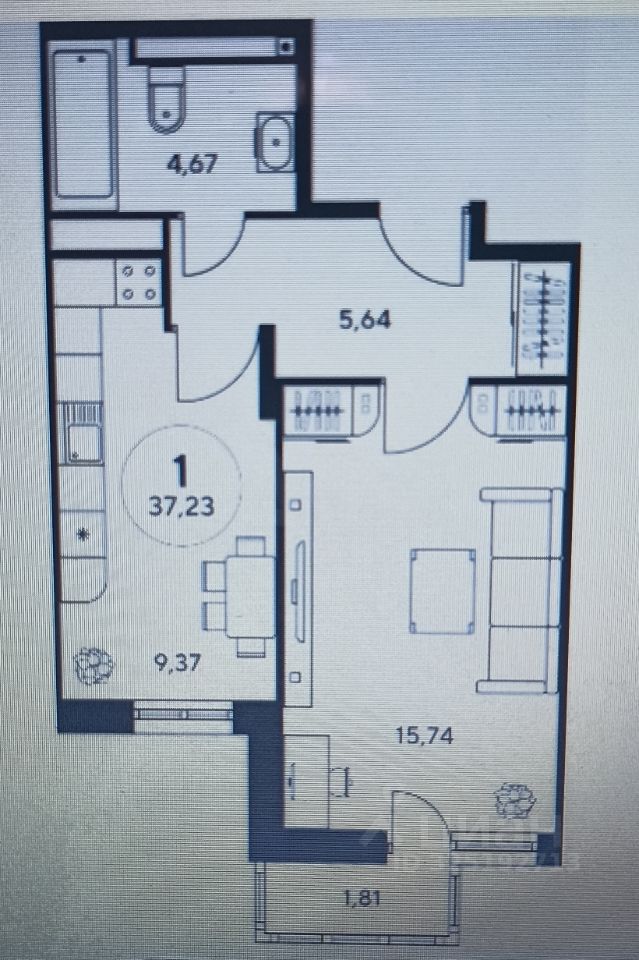 37,07 м²